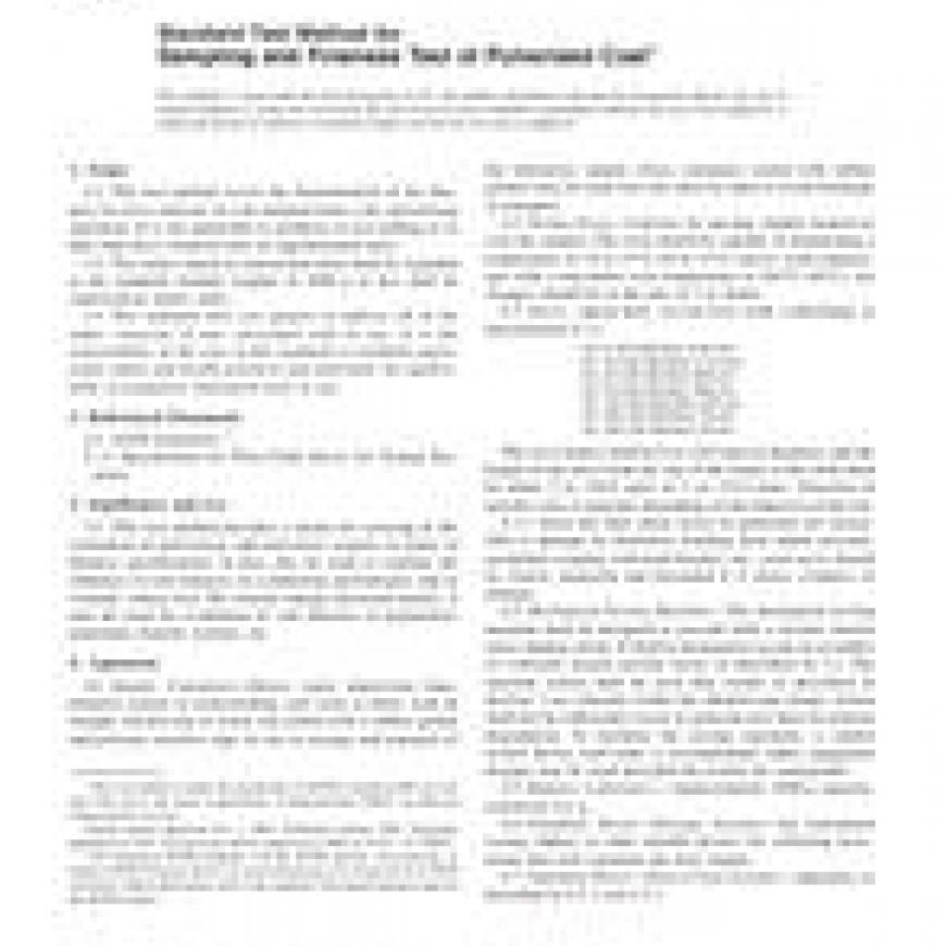 1.1 This test method covers the determination of the fineness by sieve analysis of coal sampled from a dry pulverizing operation. It is not applicable to products of wet milling or to fines that have clustered into an agglomerated mass.