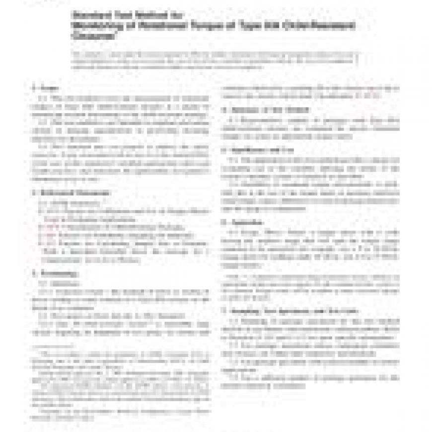 ASTM D3968-97(2007) Standard Test Method for Monitoring of Rotational Torque of Type IIIA Child-Resistant Closures (Withdrawn 2016)