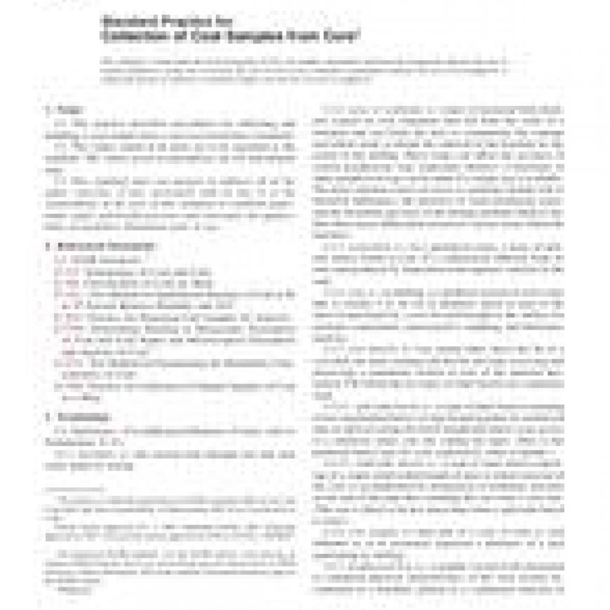 ASTM D5192-07 Standard Practice for Collection of Coal Samples from Core