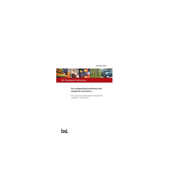 BS 5306-3:2017 gives recommendations for the initial commissioning of all portable fireextinguishers and schedules for the subsequent maintenance of extinguishers installed in alllocations. It also gives recommendations for handling certain obsolete types of extinguishers.