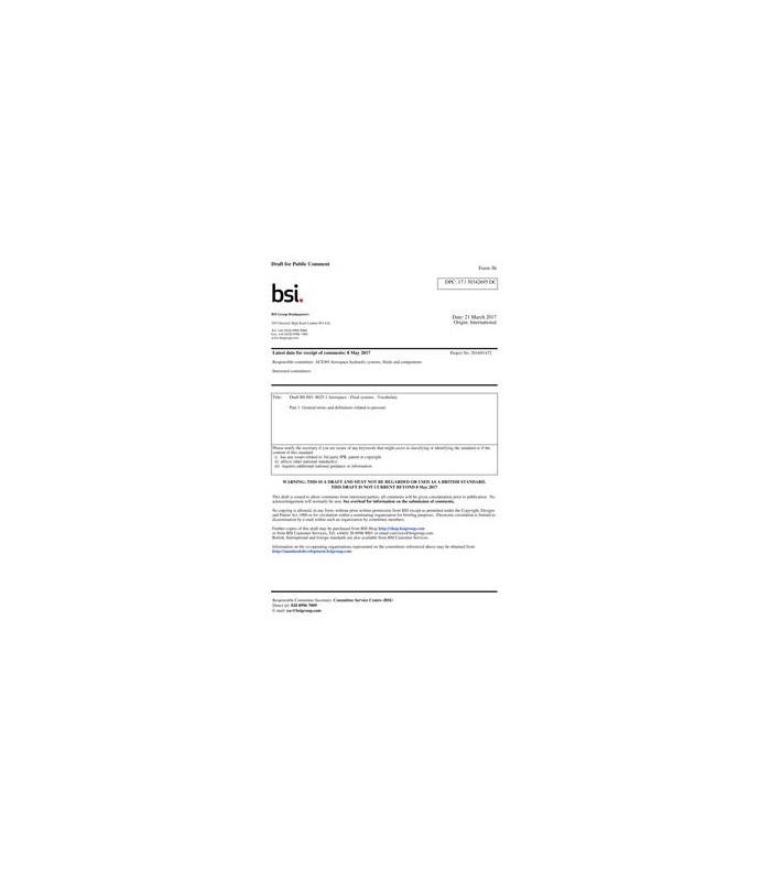 WARNING: THIS IS A DRAFT AND MUST NOT BE REGARDED OR USED AS A BRITISH STANDARD.THIS DRAFT IS NOT CURRENT BEYOND 8 May 2017This part of ISO 8625 defines general terms relating to pressure in fluid systems used in aerospaceconstruction.
