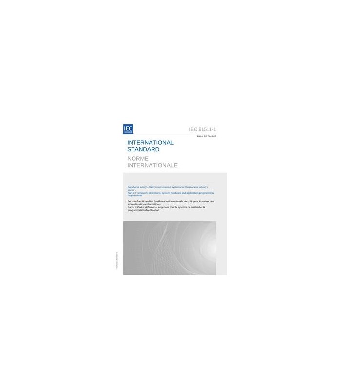 IEC 61511-1 Ed. 2.0 b:2016 Functional safety - Safety instrumented systems for the process industry sector - Part 1: Framework, definitions, system, hardware and application programming requirements
