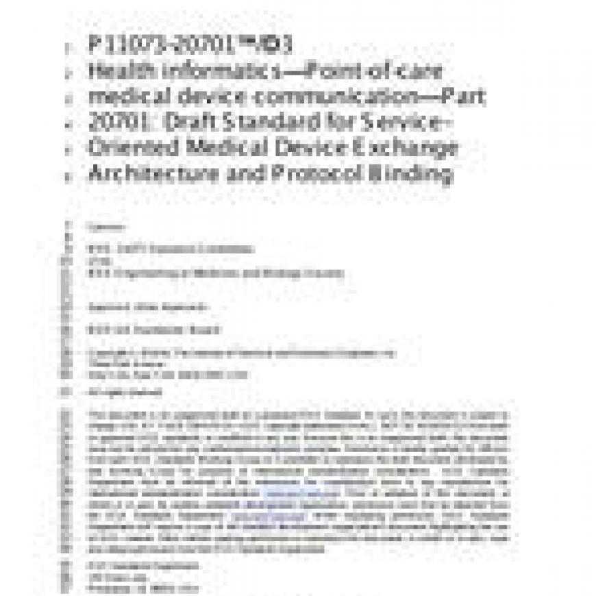 This standard defines an architecture for service-oriented distributed PoC medical devices and medical IT systems. It describes a binding of the Participant and Communication model as defined in IEEE Std 11073-10207(TM) to Medical Devices Communication Profile for Web Services (MDPWS) as defined in IEEE Std 11073-20702(TM) for transport over Web Services.1 Moreover, a binding to the Network Time Protocol (NTP) and Differentiated Services (DiffServ) is specified for time synchronization and transport Quality of Service requirements.