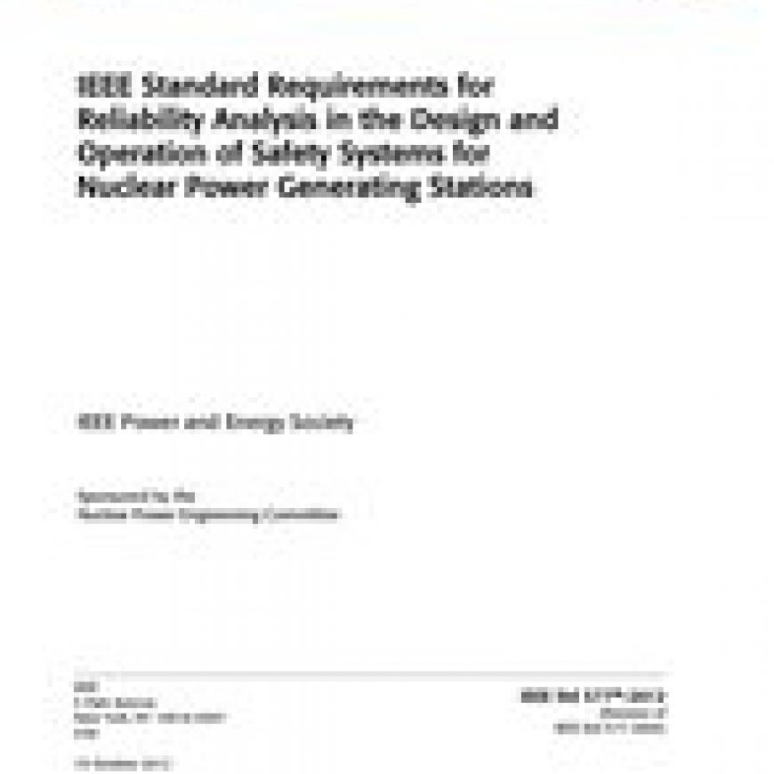Revision Standard - Active.The minimum acceptable requirements for the performance of reliability analyses for safety systems when used to address the reliability considerations discussed in industry standards and guidelines are set forth in this standard. The requirement that a reliability analysis be performed does not originate with this standard. However, when reliability analysis is used to demonstrate compliance with reliability requirements, this standard describes an acceptable response to the requirements.