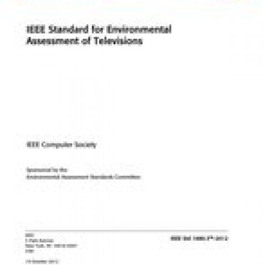New IEEE Standard - Active.A clear and consistent set of environmental performance criteria for the design of televisions is established, providing an opportunity for manufacturers to secure market recognition for efforts to reduce the environmental impact of electronic products. This standard is also intended to provide a tool for government, institutional, corporate, and consumer purchasers to identify products that demonstrate environmental leadership. This standard is intended to be updated and revised on a periodic basis to continue to set a higher performance standard for leadership products.