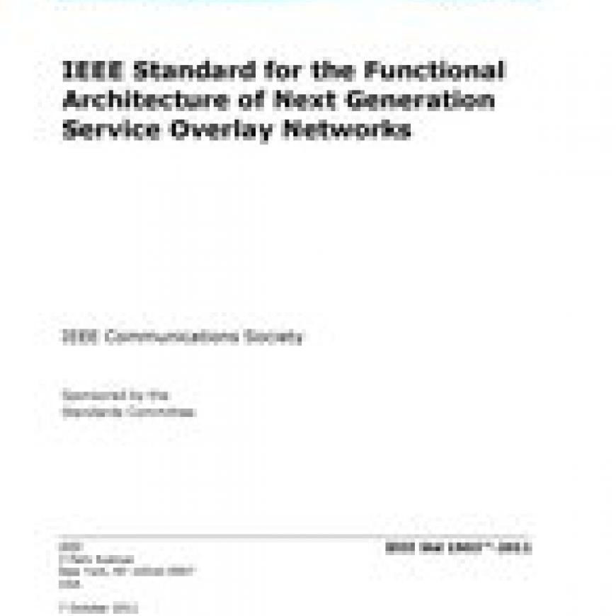 New IEEE Standard - Active.A framework of Internet Protocol (IP)-based service overlay networks is described and context-aware [e.g., such as required Quality of Service (QoS) level; type of service such as real time versus data; nature of data stream such as I-frame versus B-frame; and type of terminal such as TV monitor versus personal digital assistant], dynamically adaptive (e.g., using locally derived information to discover, organize, and maintain traffic flows in the network within a local area network), and self-organizing networking capabilities (e.g., developing network structures based on the needs of the customers and the capabilities of existing network structures), including advanced routing and forwarding schemes, that are independent of underlying networks, are specified in this Next Generation Service Overlay Network (NGSON) standard.The NGSON architecture provides advanced service- and transport-related functions to support context-aware, dynamically adaptive, and self-organizing networks. This standard specifies a functional architecture for NGSON. The functional architecture consists of a set of functional entities (FEs), their functions, reference points, and information flows to illustrate service interaction and media delivery among FEs and external components.NGSON may operate with different underlying networks such as IP Multimedia Subsystem (IMS), next generation network (NGN), peer-to-peer (P2P) overlay, or Web to transmit NGSON signaling messages and/or media among its users and services. Specifications of underlying networks are outside scope of this standard.
