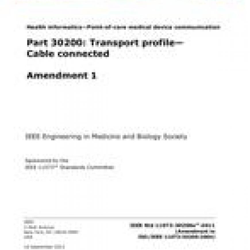 Amendment Standard - Active.ISO/IEEE Std 11073-30200:2004 is extended in this amendment to include IEEE 802.3 100BASE-T and analysis of the compatibility of cable connections between ISO/IEEE Std 11073-30200:2004 and IEEE Std 802.3TM-2008.