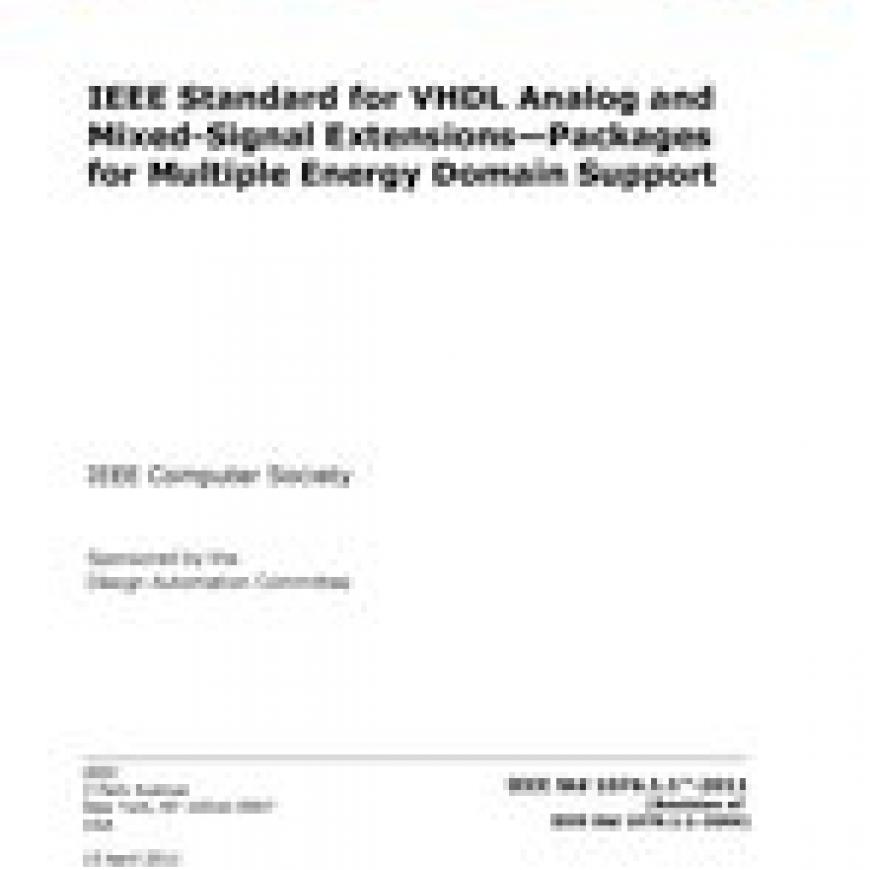 This standard defines a collection of VHDL 1076.1 packages, compatible with IEEE Std 1076.1(TM),along with recommendations for conforming use, in order to facilitate the interchange of simulation models of physical components and subsystems. The packages include the definition of standard types, subtypes, natures, and constants for modeling in multiple energy domains (electrical, fluidic, mechanical, etc.) The packages are intended for use primarily in the modeling of multiple energy domain systems. The range of operation of the packages is not defined in this standard, but is intended to be valid across a wide range of disciplines and applications.