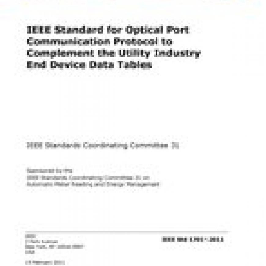 New IEEE Standard - Active.This standard provides multi-source and "plug and play" environment for the millions of metering devices in the field now and the future using the ANSI Type 2 optical port interface. It solves the problems associated with single source systems and with multi-source systems based upon proprietary communications protocols. Electric, water, and gas utilities and corresponding vendors can realize cost savings which ultimately shall benefit the client consumers of the utilities.
