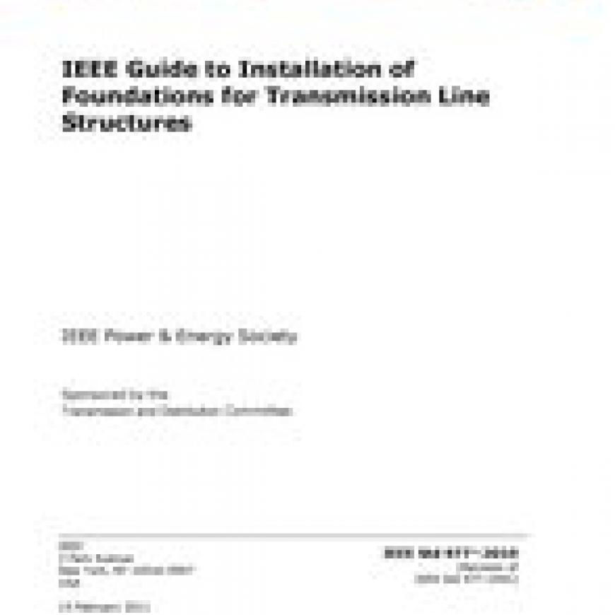 Revision Standard - Active.Various approaches to good construction practices that could improve the installation of transmission line structure foundations are presented. Spread foundations, drilled shaft foundations, pile foundations, and anchors are treated. This guide is intended to be used as a reference source for those involved in the ownership, design, and construction of transmission structures.