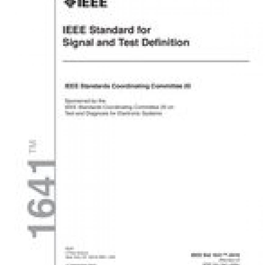 Revision Standard - Active.This standard provides the means to define and describe signals used in testing. It also provides a set of common basic signals, built upon formal mathematical specifications so that signals can be combined to form complex signals usable across all test platforms. This standard contains additional downloads at http://standards.ieee.org/downloads/1641/1641-2010