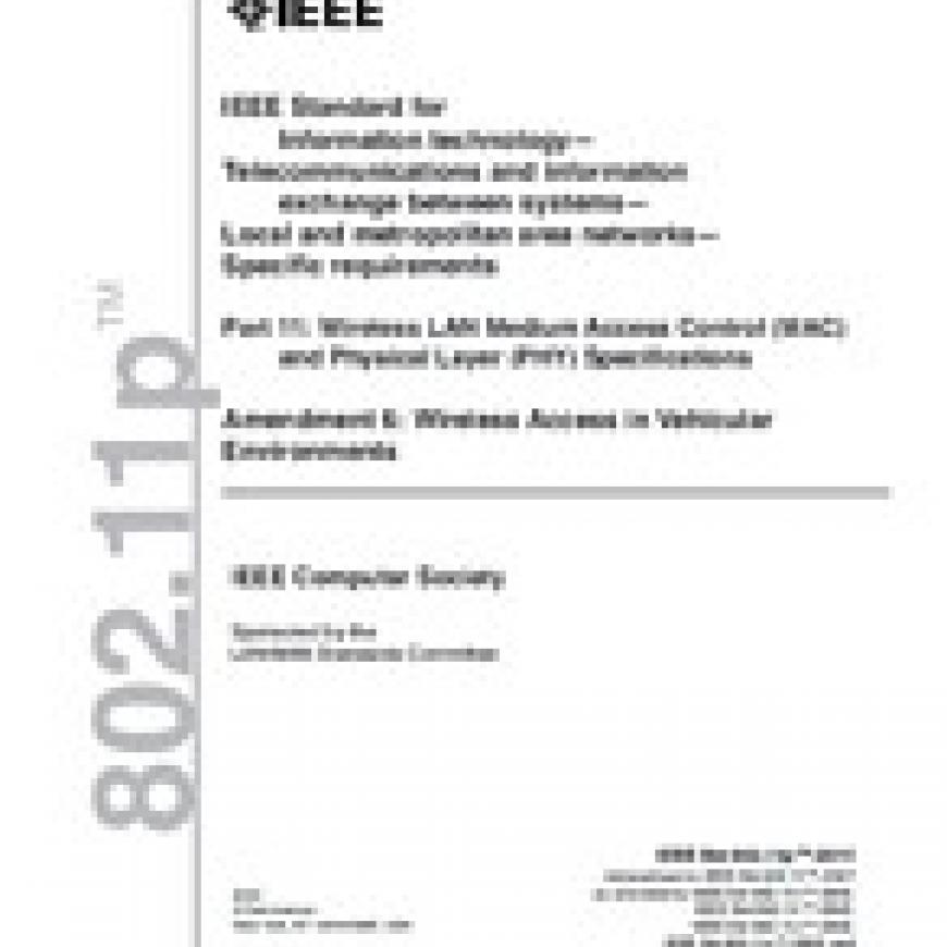 IEEE 802.11p-2010 IEEE Standard for Information technology-- Local and metropolitan area networks-- Specific requirements-- Part 11: Wireless LAN Medium Access Control (MAC) and Physical Layer (PHY) Specifications Amendment 6: Wireless Access in Vehicular Environments