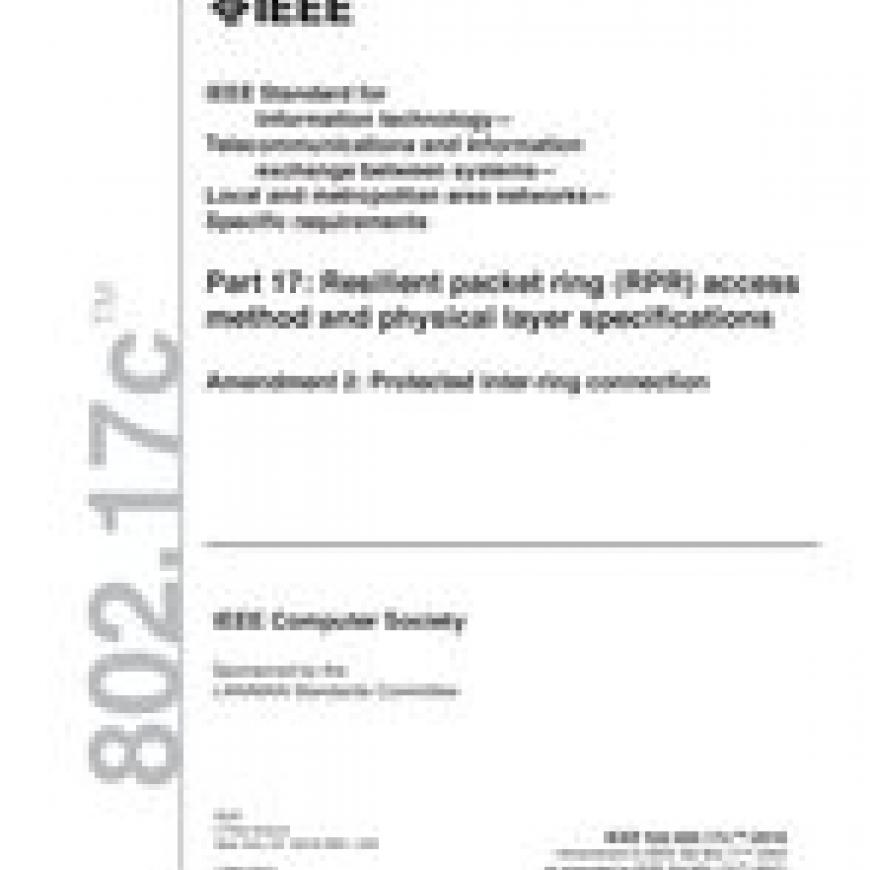 IEEE 802.17c-2010 IEEE Standard for Information technology--Telecommunications and information exchange between systems--Local and metropolitan area networks--Specific requirements Part 17: Resilient packet ring (RPR) access method and physical layer specifications Amendment 2: Protected inter-ring connection