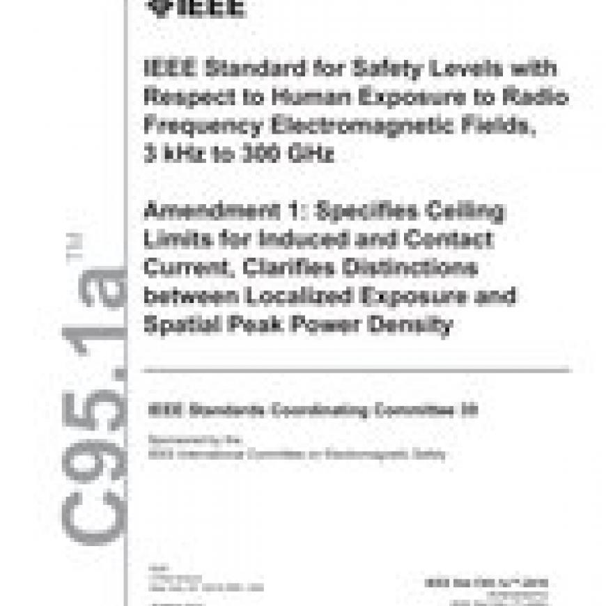 Amendment Standard - Superseded.This amendment to IEEE Std C95.1-2005 specifies ceiling values for induced and contact current requirements, clarifies distinctions between a??localized exposurea?? and a??peak power density. (The PDF of this standard is available at no cost compliments of the GETIEEEC95 program located at https://ieeexplore.ieee.org/browse/standards/get-program/page)