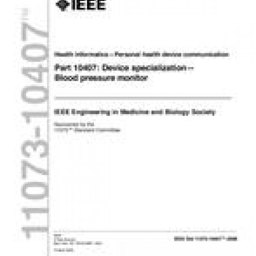 Within the context of the ISO/IEEE 11073 family of standards for device communication, this standard establishes a normative definition of communication between personal telehealth blood pressure monitor devices and compute engines (e.g. cell phones, personal computers, personal health appliances, set top boxes) in a manner that enables plug-and-play interoperability. It leverages appropriate portions of existing standards including ISO/IEEE 11073 terminology, information models, application profile standards, and transport standards. It specifies the use of specific term codes, formats, and behaviors in telehealth environments restricting optionality in base frameworks in favor of interoperability. This standard defines a common core of communication functionality for personal telehealth blood pressure monitors.