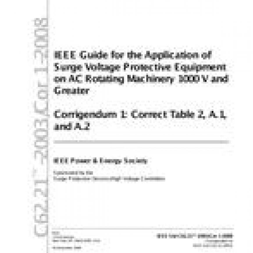 IEEE Guide for the Application of Surge Voltage Protective Equipment on AC Rotating Machinery 1000 V and Greater - Corrigendum 1: Correct Table 2, A.1, and A.2