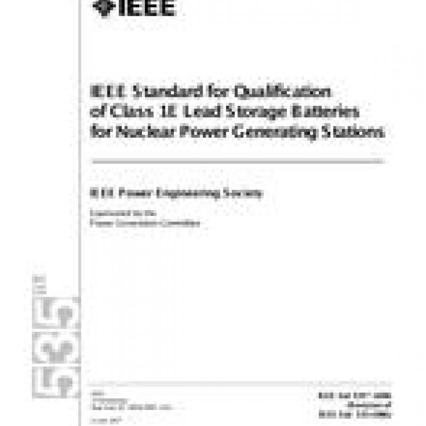 This standard describes qualification methods for Class 1E vented lead acid batteries and racks to be used in nuclear power generating stations outside primary containment. Qualification required by IEEE Std 308¿¿¿-20011 or IEEE Std 765¿¿¿-2002 can be demonstrated by using the procedures in this standard in accordance with IEEE Std 323¿¿¿-2003. Battery sizing, maintenance, capacity testing, installation, charging equipment, and consideration of other type batteries are beyond the scope of this standard.