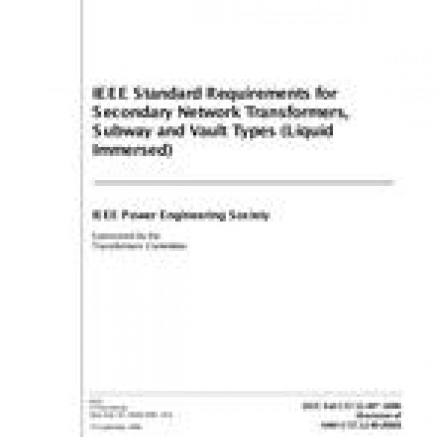 This standard covers certain electrical, dimensional, and mechanical characteristics and takes intoconsideration certain safety features of three-phase, 60 Hz, liquid-immersed, secondary networktransformers with a three-position grounding switch, subway and vault types, rated 2500 kVA and smaller; primary 34 400 V and below; secondary 216Y/125 V and 480Y/277 V.A subway-type network transformer is one that is suitable for frequent or continuous submerged operation.A vault-type network transformer is one that is suitable for occasional submerged operation.