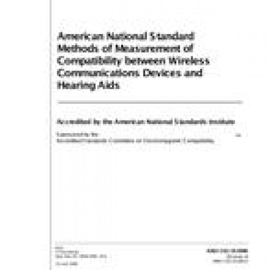 This standard applies to both wireless communications devices (WDs) and hearing aids. It sets forthuniform methods of measurement and parametric requirements for the electromagnetic and operationalcompatibility and accessibility of hearing aids used with WDs, including cordless, cellular, personal communications service (PCS) phones, and voice over internet protocol (VoIP) devices, operating in the range of 800 MHz to 3 GHz. However, this version is focused on existing services, which are in common use. Accordingly, in this version tests are provided for services in the 800 MHz to 950 MHz and 1.6 GHz to 2.5 GHz frequency bands. Future versions may add tests for other frequency bands, as they come into more common use.This standard is intended to apply to all types of hearing aids with acoustic output, including, as examples, behind-the-ear (BTE), in-the-ear (ITE), in-the-canal (ITC), and completely-in-the-canal (CIC) types. Test methods are provided for hearing aids operating in acoustic (microphone input) mode or in T-Coil input mode. The field levels called for in various places shall be maintained within the limits for radio frequency (RF) safety, set forth in ANSI C95.1-1999.1