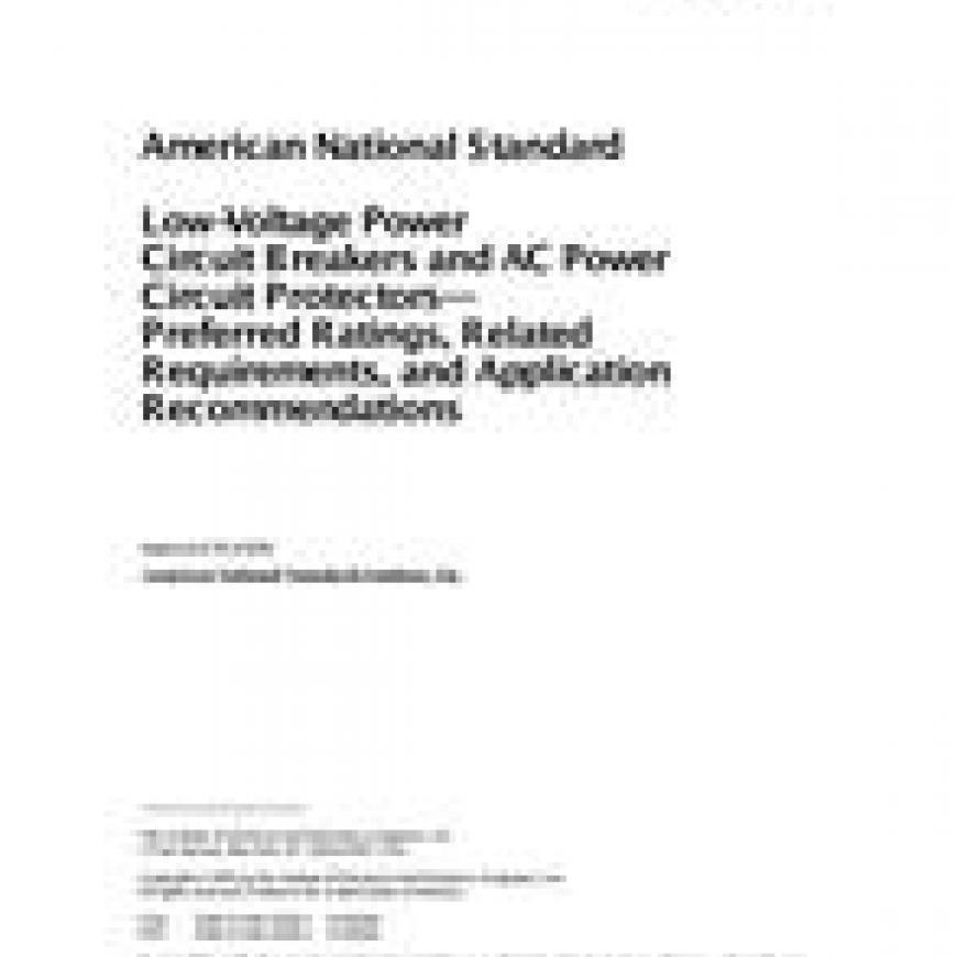 American National Standard Low-Voltage Power Circuit Breakers and AC Power Circuit Protectors- Preferred Ratings, Related Requirements, and Application Recommendations