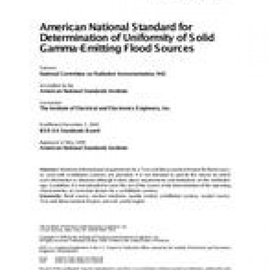 New IEEE Standard - Active.Minimum informational requirements for a Test and Measurement Report for flood sourc-es used with scintillation cameras are provided. It is not intended to specify the means by which such information is obtained although it does place requirements and limitations on the methodol-ogy. In addition, it is not intended to cover the use of the source in the determination of the operating characteristics or correction factors for a scintillation camera.