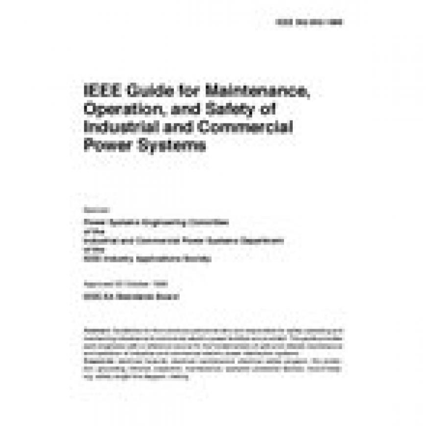 New IEEE Standard - Active.This IEEE Standards product is part of the Color Books family. The IEEE Yellow Book provides plant engineers with a reference source for the fundamentals of safe and reliable maintenance and operation of industrial and commercial power systems, regardless of system size or complexity. The most effective utilization of the information contained in this guide would be its inclusion in a long-term maintenance and operation strategy that is tailored to the individual needs of each power system. This strategy would ensure long-term reliability and would include a procedure for auditing performance. To ensure the safety, reliability, maintenance, and operation of systems, the IEEE Yellow Book establishes specific procedures. Information is provided to offer guidance for the establishment of administrative and control procedures, as well as the organizational capabilities necessary to ensure reliable system operation. The level of performance reliability is stressed and several maintenance strategies are reviewed, including record-keeping, testing and inspection methods, and auditing maintenance and operation performance. Several chapters in the book are entirely devoted to safety issues, such as the review of safety equipment and recommendations for the management of unusual or hazardous activities.