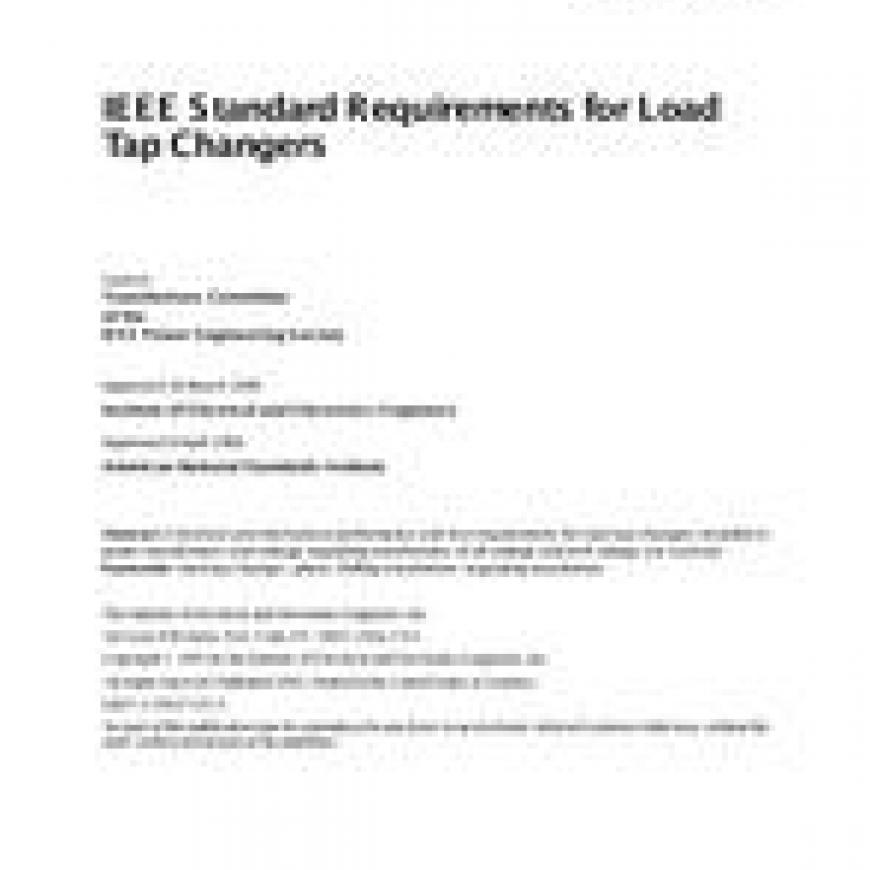 New IEEE Standard - Superseded.Electrical and mechanical performance and test requirements for load tap changers installed in power transformers and voltage regulating transformers of all voltage and kVA ratings are covered.