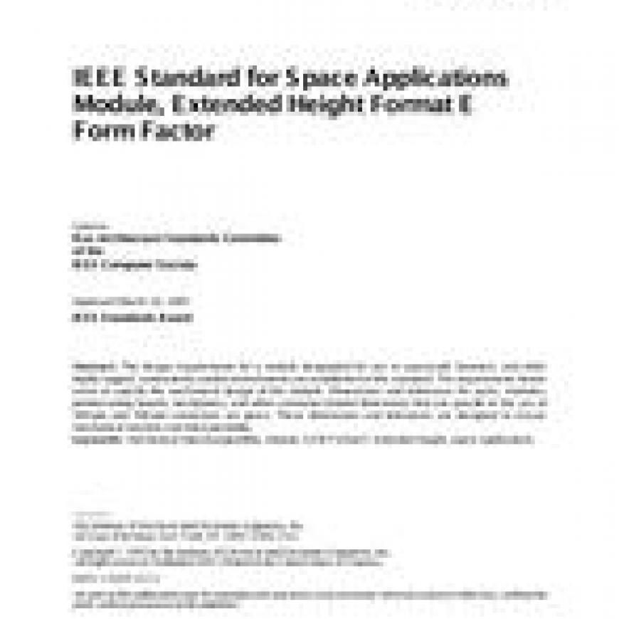 New IEEE Standard - Inactive-Withdrawn.Withdrawn Standard. Withdrawn Date: Jan 15, 2001. The design requirements for a module designated for use in spacecraft, boosters, and other highly rugged, conductively cooled environments are established in this standard. The requirements herein serve to specify the mechanical design of the module. Dimensions and tolerances for racks, modules, printed wiring boards, backplanes, and other connector-related dimensions that are specific to the use of 300-pin and 396-pin connectors are given. These dimensions and tolerances are designed to ensure mechanical function and interoperability.