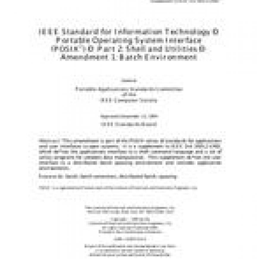 Amendment Standard - Superseded.This amendment is part of the POSIX series of standards for applications and user interfaces to open systems. It is a supplement to IEEE Std 1003.2-1992, which defines the applications interface to a shell command language and a set of utility programs for complex data manipulation. This supplement defines the user interface to a distributed batch queuing environment and includes application environments.