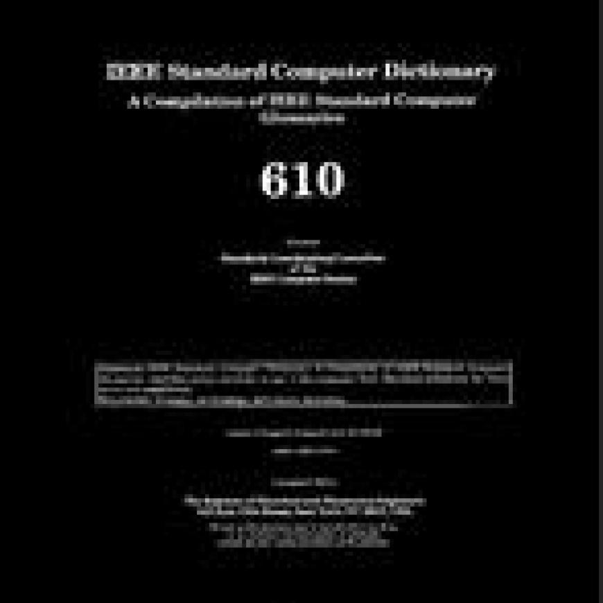 This dictionary is a compilation of IEEE standard glossaries covering the fields of mathematics of computing, computer applications, modeling and simulation, image processing and pattern recognition, data management, and software engineering. Every effort has been made to include all terms within the designated subject areas. Terms were excluded if they were considered to be parochial to one group or organization; company-proprietary or trademarked; multiword terms whose meaning could be inferred from the definitions of the component words; or terms whose meaning in the computer field could be directly inferred from their standard English meaning.
