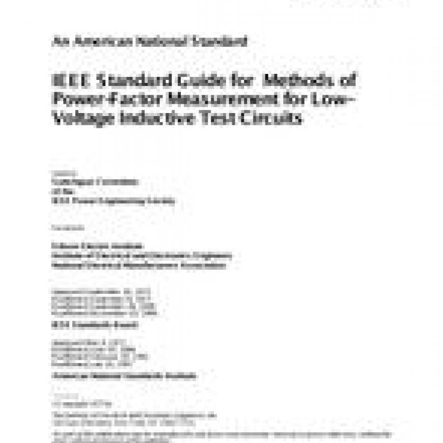The purpose of this standard is to recommend methods of measuring power factor for inductive test circuits by such means as oscillographic records, so that the preferred method, giving the greatest accuracy, is recommended for any particular circuit.