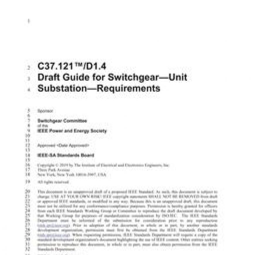 The guide is intended for use as the basis for the coordination of equipment in unit substations by assisting in the selection of components. A variety of designs for unit substations are possible using various combinations of incoming sections, transformer sections, outgoing sections, and transition sections.It is intended that the incoming, outgoing, transformer, and transition sections included in a unit substation shall meet the basic requirements of applicable industry standards for those sections. In addition, this guide provides suggested requirements when used as part of a unit substation.