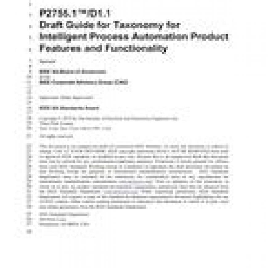 New IEEE Standard - Superseded.Utilizing terminology as established in IEEE 2755-2017, this guide defines and classifies approximately 150 features and functions across five core areas of technology capability in the family of new technology products collectively referred to as Intelligent Process Automation. This guide is published to create clarity for all who are involved with Software Based Intelligent Process Automation products so that industry participants may rely on a product manufacturera??s functionality claims and understand the underlying technological methods used to produce those functions and how one might approach evaluating the relative sophistication and importance of each function or feature. This guide represents the consensus of a diverse panel of industry participants.