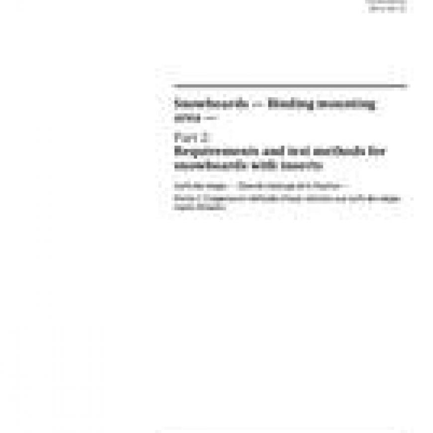 ISO 10958-2:2015 specifies requirements and test methods for snowboards as sports equipment on which bindings are attached by means of inserts that are not removable and screws.