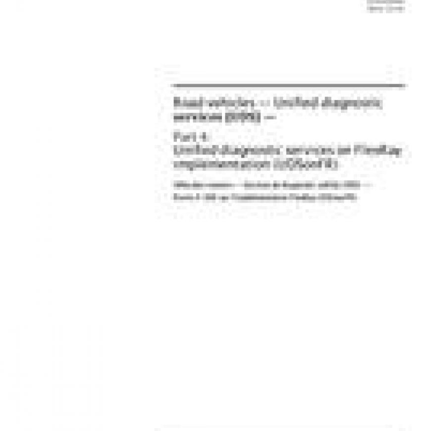ISO 14229-4:2012 specifies the implementation of a common set of unified diagnostic services (UDS) on FlexRay networks (FR) in road vehicles (UDSonFR).