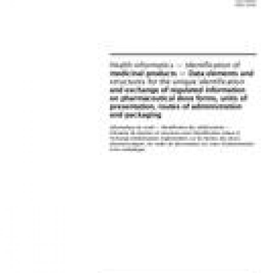 ISO 11239:2012 Health informatics - Identification of medicinal products - Data elements and structures for the unique identification and exchange of regulated information on pharmaceutical dose forms, units of presentation, routes of administration and packaging