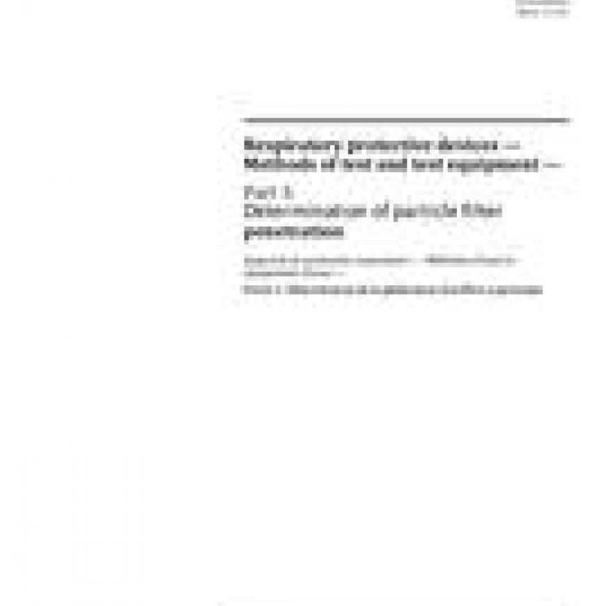 ISO 16900-3:2012 specifies the test methods for particle filter penetration of separate or integral filters for respiratory protective devices.