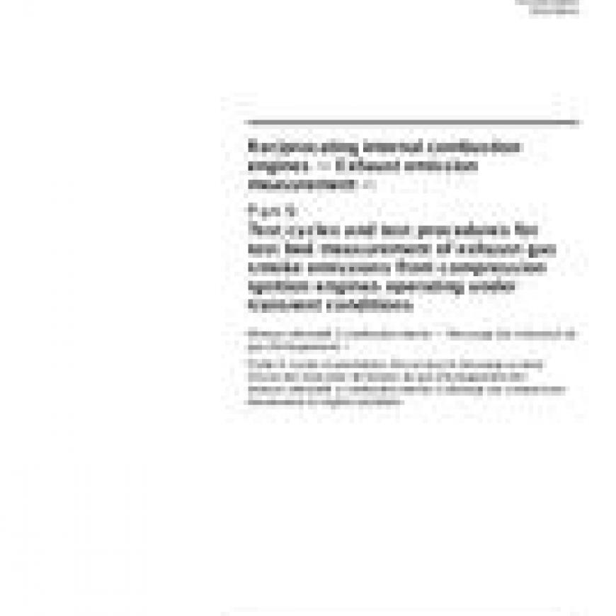 ISO 8178-9:2012 Reciprocating internal combustion engines - Exhaust emission measurement - Part 9: Test cycles and test procedures for test bed measurement of exhaust gas smoke emissions from compression ignition engines operating under transient conditions