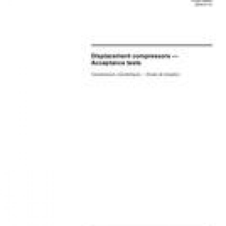 ISO 1217:2009 specifies methods for acceptance tests regarding volume rate of flow and power requirements of displacement compressors. It also specifies methods for testing liquid-ring type compressors and the operating and testing conditions which apply when a full performance test is specified.