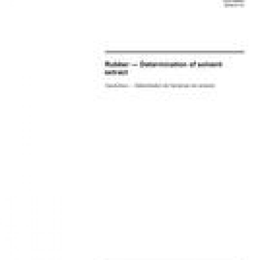 ISO 1407:2009 specifies three methods for the quantitative determination of the material extractable from raw rubbers, both natural and synthetic, and their unvulcanized and vulcanized compounds.