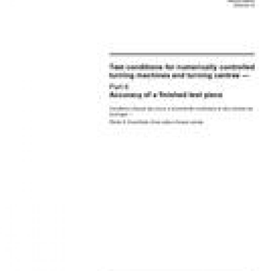 ISO 13041-6:2009 specifies, with reference to ISO 230-1, a series of cutting tests, under finishing conditions, of standard test pieces. It also specifies the characteristics and dimensions of the test pieces themselves.