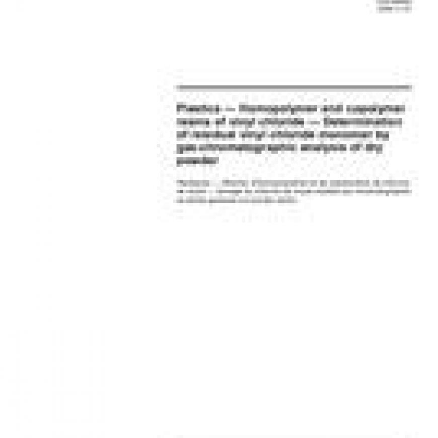 ISO 24538:2008 specifies a method for the determination of residual vinyl chloride monomer in homopolymer and copolymer resins of vinyl chloride.