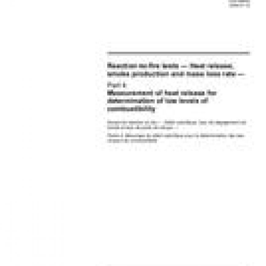 ISO 5660-4:2008 Reaction-to-fire tests - Heat release, smoke production and mass loss rate - Part 4: Measurement of heat release for determination of low levels of combustibility