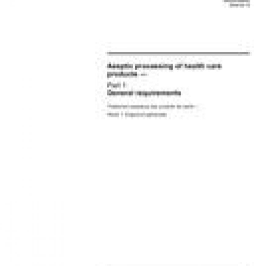 ISO 13408-1:2008 specifies the general requirements for, and offers guidance on, processes, programmes and procedures for development, validation and routine control of the manufacturing process for aseptically-processed health care products.