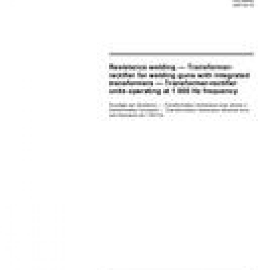 ISO 22829:2007 is applicable to transformer-rectifier units as used in electric resistance welding machines operating from a power supply with a frequency of 1 000 Hz, and of a rated value of the input voltage equal to or higher than 500 V. These transformer-rectifier units are primarily used in welding guns with an integrated transformer.