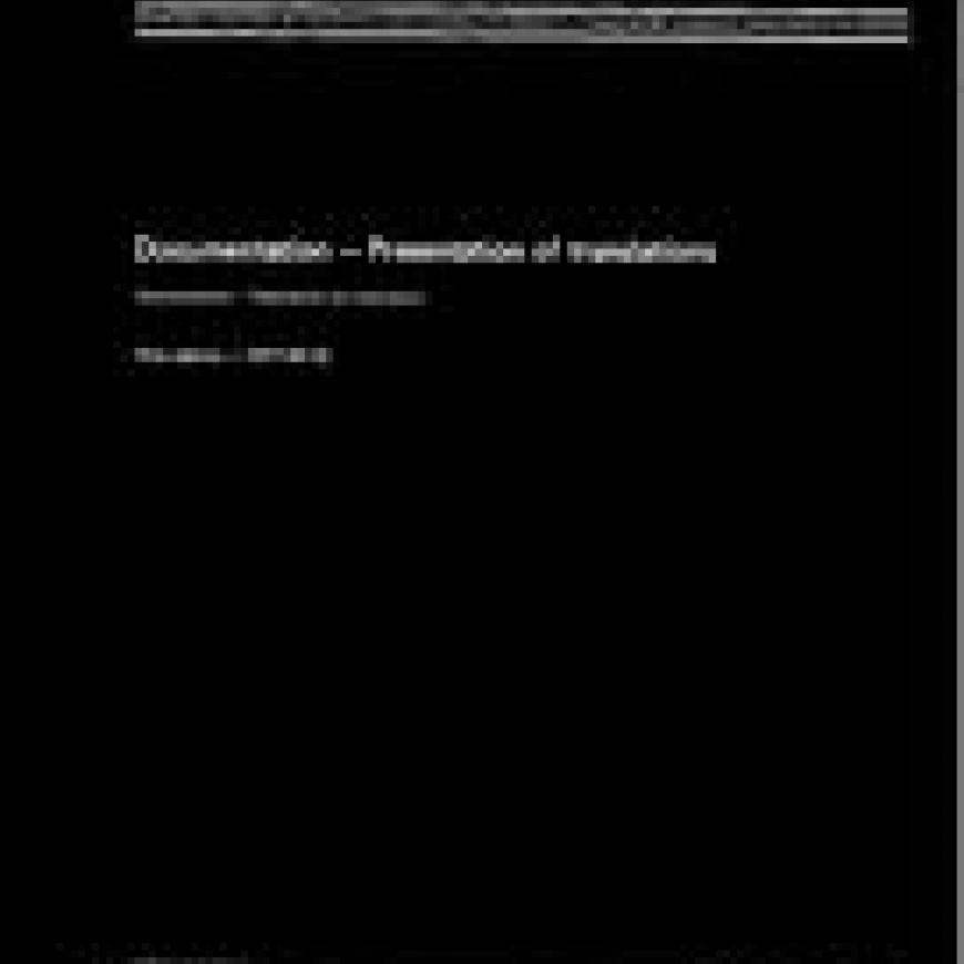 Sets out rules to ensure that translations are presented in a standard form which will simplify their use by different categories of user. Applies to the translation of all documents, whether the translation is complete, partial or abridged. Four types of translation are discussed.