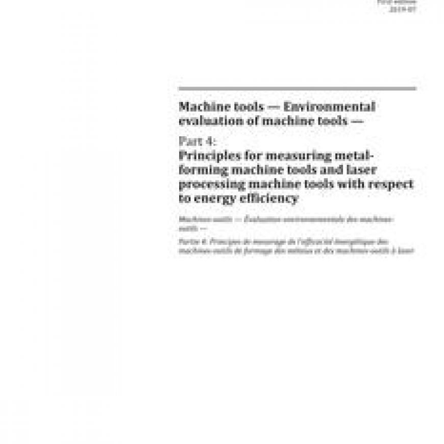 Machine tools - Environmental evaluation of machine tools - Part 4: Principles for measuring metal-forming machine tools and laser processing machine tools with respect to energy efficiencystandard by International Organization for Standardization, 08/01/2019