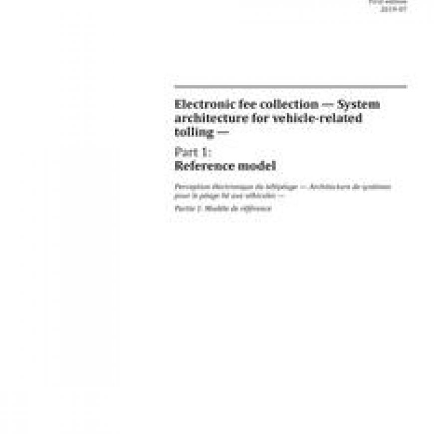 Electronic fee collection - System architecture for vehicle-related tolling - Part 1: Reference modelstandard by International Organization for Standardization, 07/01/2019