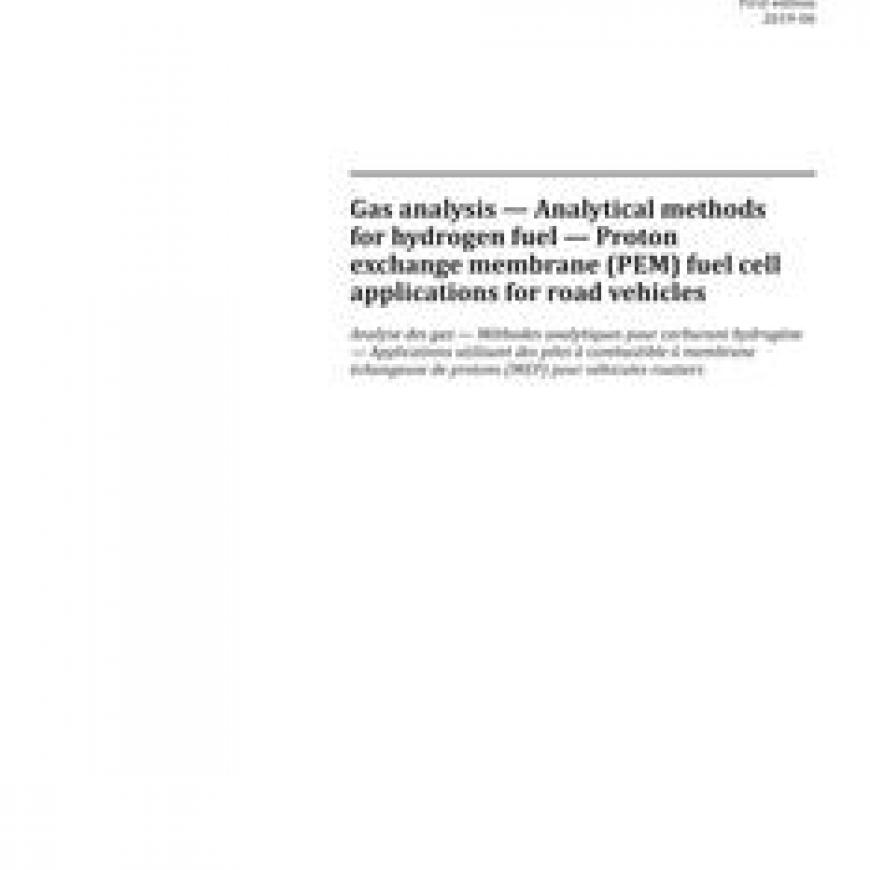 Gas analysis - Analytical methods for hydrogen fuel - Proton exchange membrane (PEM) fuel cell applications for road vehiclesstandard by International Organization for Standardization, 07/01/2019