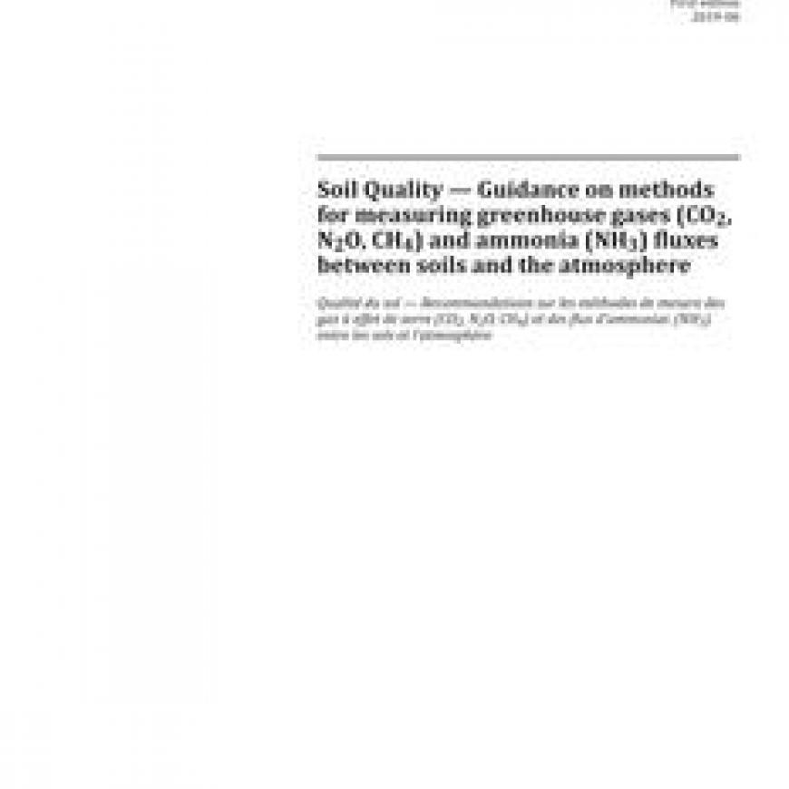 ISO 20951:2019 gives an overview and provides guidance on the main methods available to quantify the exchanges of greenhouse gases (CO2, N2O, CH4) and ammonia (NH3) between soils and the atmosphere.